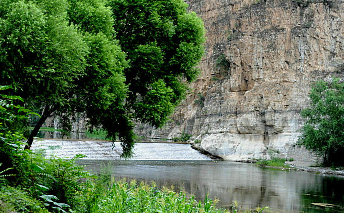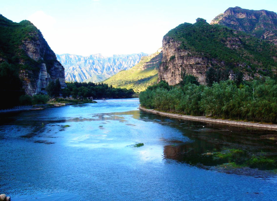 西石门村位于十二渡,十二渡名曰“龙门放舟”,一左一右两座高耸直立的峭壁,象两扇刚刚开启的"龙门",拒马河从"龙门"中滔滔流出,景色非常壮观。河中有一片十分开阔的水面,驾一叶扁舟或竹排在这片碧波之上,定会令你魂清气爽,心旷神怡。诗曰: