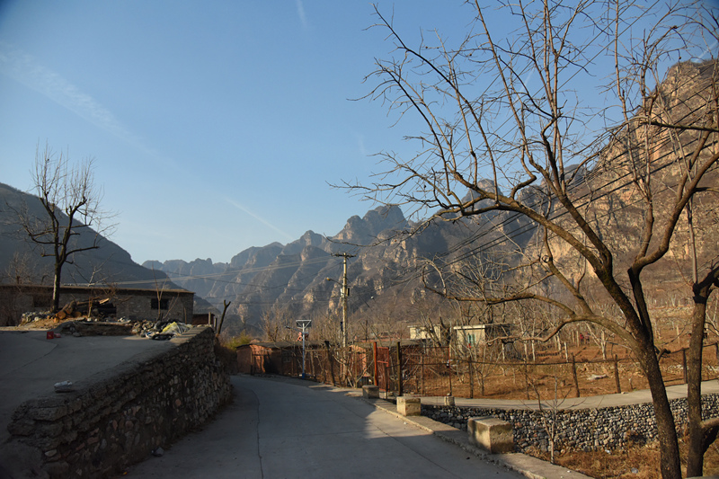 绕过塔山仙池,沿柏油路往西北拐就是两崖对峙中间深陷的石门了。沿石门左侧有一个小山村,这就是西石门村,也叫前(钱)石门村。